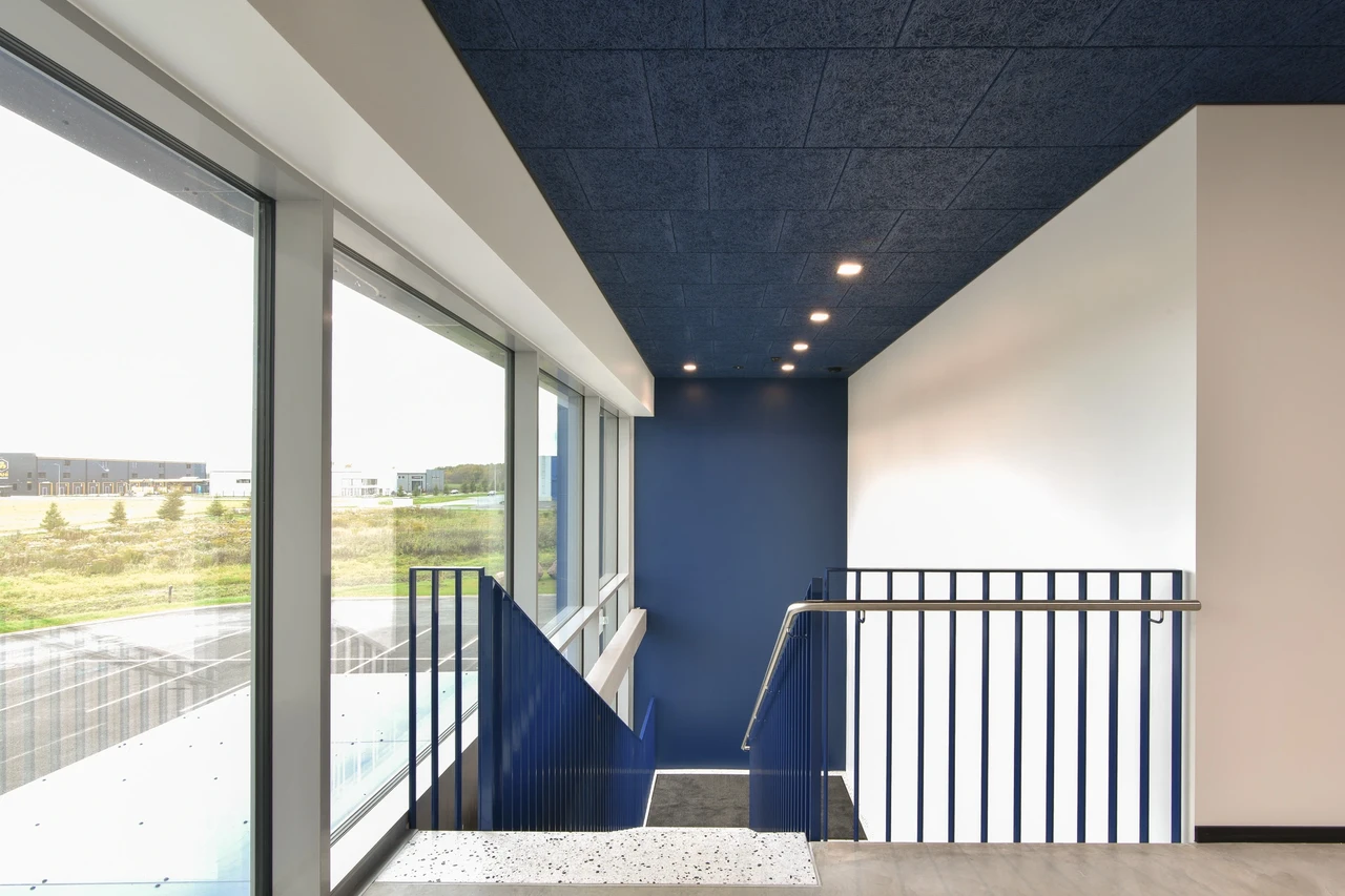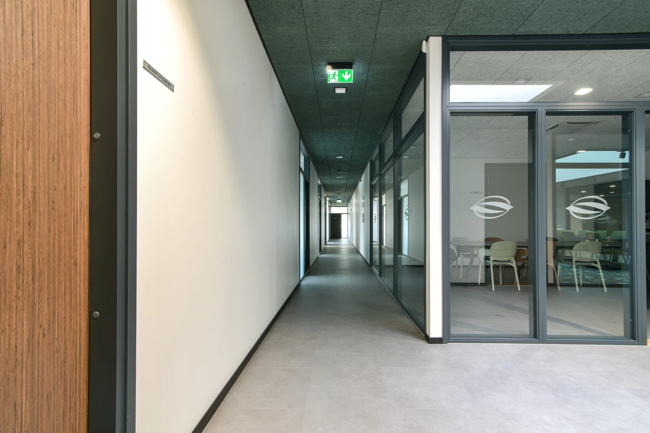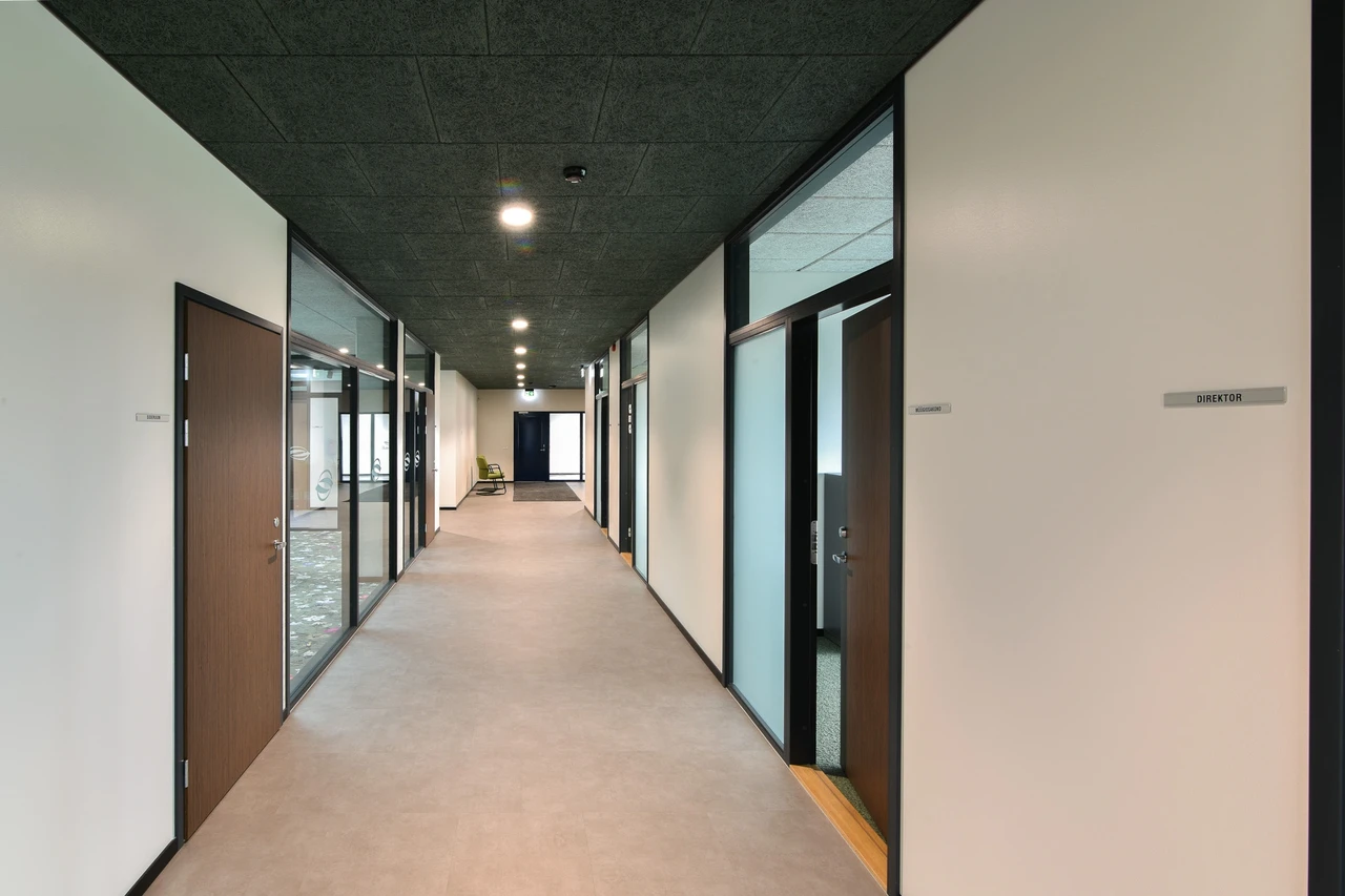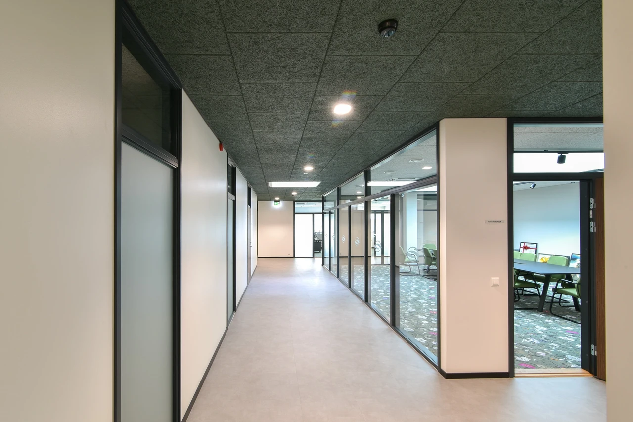 Riia kunsti- ja meediakool. Lahendus Baffle-plaatidega Raamatukogu lugemissaalKauplus Gemoss Valmieras